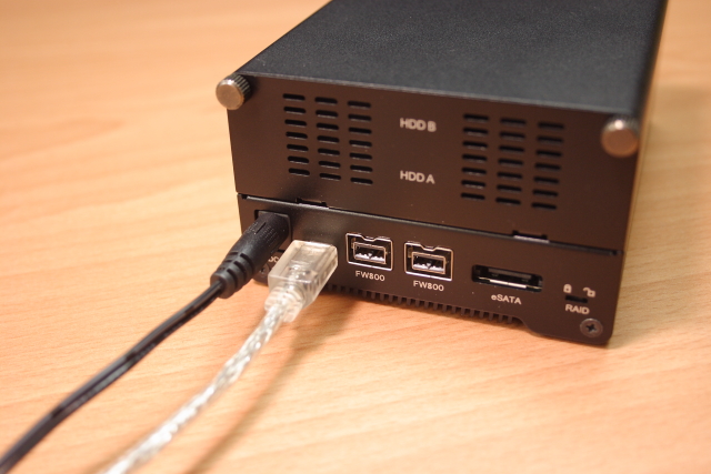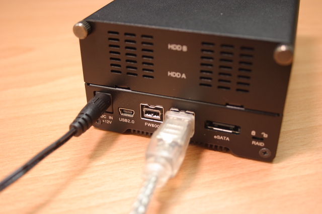 硬碟盒上頭也沒有插孔,不知為何?莫非要自行加購 FireWire 800 轉 FireWire 400 線材?)