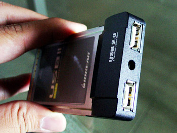 除了桌上型的電腦可插 PCI 規格的擴充卡,筆記型電腦的用戶也有同樣的需求的,但是要同樣的享用 USB 2.0 的高速,就必須另外尋找 PCMCIA 的解決方法了(對不起了大白、小白的使用者)。