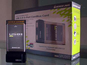 GPU202 主體為 2 個 USB 連結埠,中間有個電源的插孔,是為了在電力不足的情況下可以從 PS2 或是其他的 USB 埠「偷電」來用;其實幾乎每張 USB 2.0 規格的 PCMCIA 的擴充卡都有這樣的設計,似乎廠商也都了解 USB 供電不足的慘痛本質。幸好,現在的周邊像是外接硬碟、燒錄機等,都隨機或是可以另外選購外接電源,這樣也就解決了絕大部分的問題了。