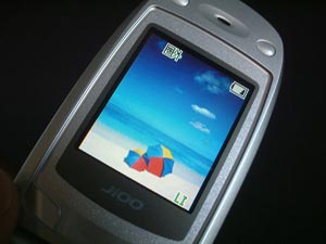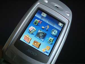 也因為是折疊式設計,所以配備有內外兩個螢幕。位於機身上,要掀起上蓋才看得到的內螢幕為 120 x 144 像素這畫面算是挺大的了,而位於上蓋朝外顯示的外螢幕則是 72 x 72 像素,兩者皆為 65536 色 TFT ,所展現出來的豔麗色彩當然是沒話說了。就如其他折疊式手機, Sanyo J100 的外螢幕可顯示來電大頭貼圖案,很有看頭。啊!小弟以為,現在手機畫面越來越豔麗,實在是今非昔比!看著看著,都覺得以前的手機好像黑白電視或是黑白照片一樣,可能在未來有另類的色彩呈現作用外,根本就已經為時代所淘汰。
