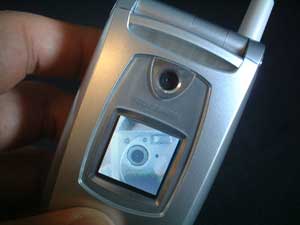 當然,如果手機處於上蓋掀開的狀態,此時的拍照方式就與其他款式具備數位相機功能的折疊手機相同囉,都是使用位於機身的內螢幕來作為取景視窗。當然,為 Sanyo J100 所拍攝的照片就可設為手機兩螢幕的桌布底圖,或者拿來當成位於上蓋的外螢幕來電顯示大頭貼圖案之用。