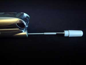 位於側邊的 cable 連接埠,透過 cable 就可連接電腦,讓電腦透過 PHS 電話上網。