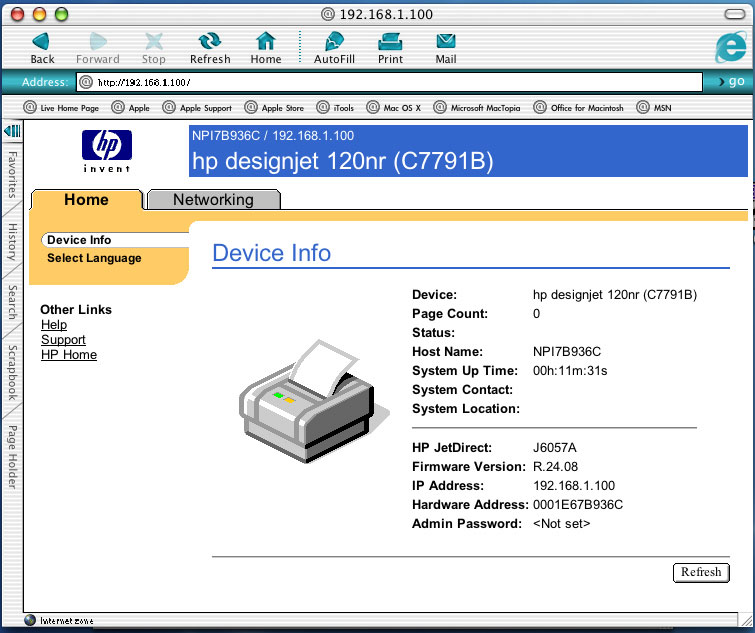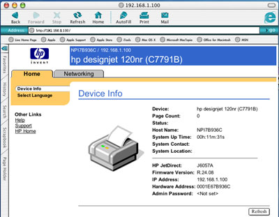 HP DesignJet 120 的一些連線設定都可以透過 Web 的方式來搞定。