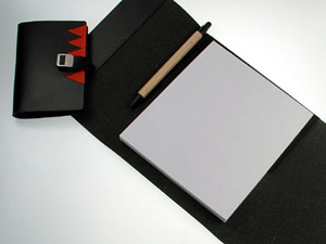 WB01 筆記本 大小為 18.5 x 18 CM ,可以作為專業經理人或設計師加強速記功能,讓創意不流失。而雙層交互折式收法並附有環保回收筆。最為筆者所激賞的,是其交互折疊的地方並不用扣鈕還是疊扣等傳統方式扣緊,相對的是以簡單大方的方式,利用皮件本身折疊的慣性自動蓋起來,所以就沒有其他繁複或多餘的裝飾,徹底顯露其設計風格的真正本質。