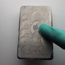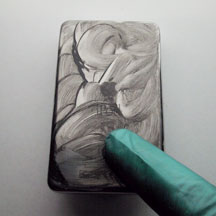 把食指上所沾的研磨劑以畫小圓圈的方式,以均勻的壓力不斷的在 iPod 的金屬背板上按摩,您以手指所畫的圓圈越小越好。您並不需要擔心研磨劑會將 iPod 背板上的雷射刻蝕文字磨去,因此可以在整個 iPod 的背面塗滿研磨劑。
