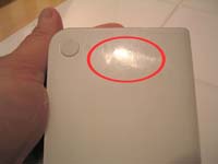 在此以 iBook 的電池蓋為例,左圖是在使用 iCleaner 之前的狀況,iBook 的塑膠殼已經因為經常性的刮傷以致變成幾乎不反光的表面;右圖則是在僅使用 iCleaner 擦拭過一次後的效果。這四張照片都可以按下以觀看放大的版本。
