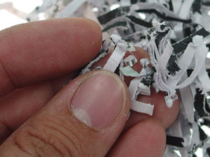 碎成這樣 2 x 0.4 公分的細紙條,拼圖高手來嘗試復原想必也是很嗆的。
