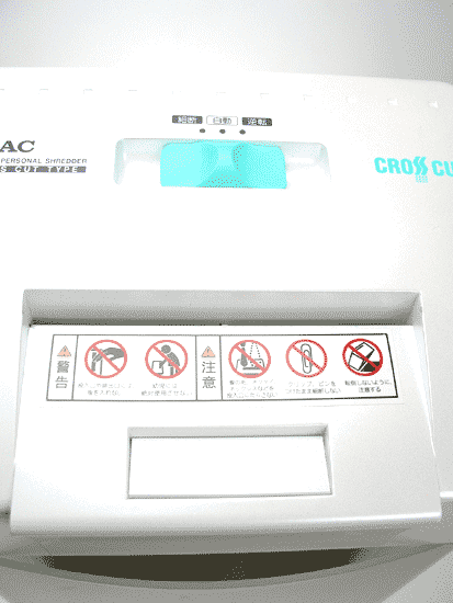 其白色外殼上方有著一個醒目的綠色開關,當其放在中間時,就是「自動模式」;有紙塞入觸動感測器時,就可自動開啟並進行碎紙動作;這也是一般使用時所應該設定的模式。當開關切在左邊位置時,就是所謂的「手動碎紙模式」,也就是會不斷地將紙往內送。這用在因體積較小無法在自動模式下感觸到感測器,讓 OP-S505X 正常工作的小型銷毀標的物,就十分好用了。當開關切在右邊時,就是「退紙模式」,萬一太貪心一次塞入太多紙或因其他因素導致銷毀標的物進行到一半時卡住,就可利用此模式來進行退紙。一般說來,只要使用此開關,讓銷毀標的物「進進退退」,就可將之逐漸退出,或甚至於將之逐漸順利插入碎紙機內。