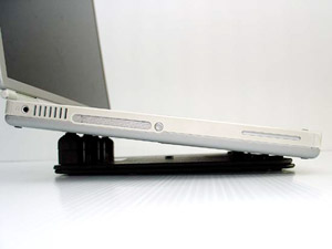 隨著後端的墊高,就造成了筆記型電腦傾斜角度的不同,使用者可按照自身的要求,找到最適合的角度。其他沒用到的腳墊其實也不怕遺失,因為將之悉數插放在沒有用到的接腳上即可。