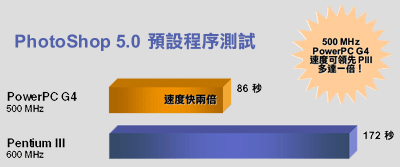 500 MHz PowerMac G3 相當;就算是使用專為 PowerPC G4 所設計的軟體,PowerMac