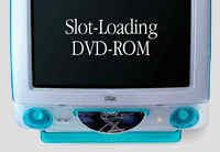 4 倍速 DVD 光碟機,藉由 ATI Rage 128 VR 的協助,iMac DV 的使用者將可以在電腦螢幕上欣賞數位信號直接播放的高品質