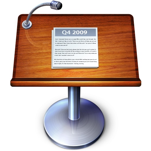 Keynote :講台上放的文件是百老匯音樂劇「Spring Awakening」中《The Bitch of Living》的歌詞。