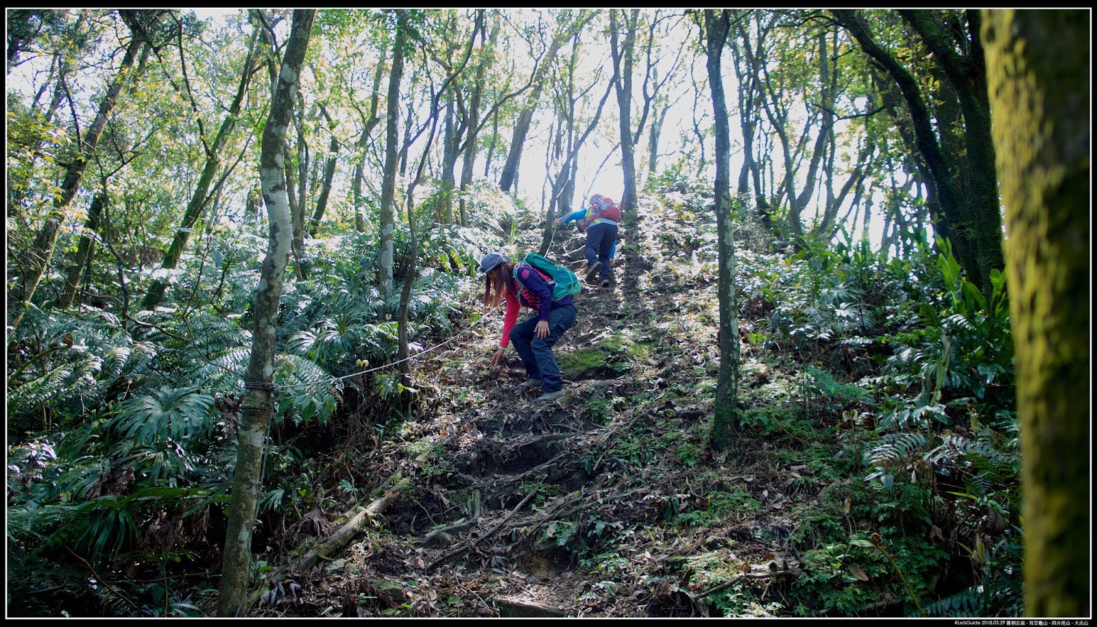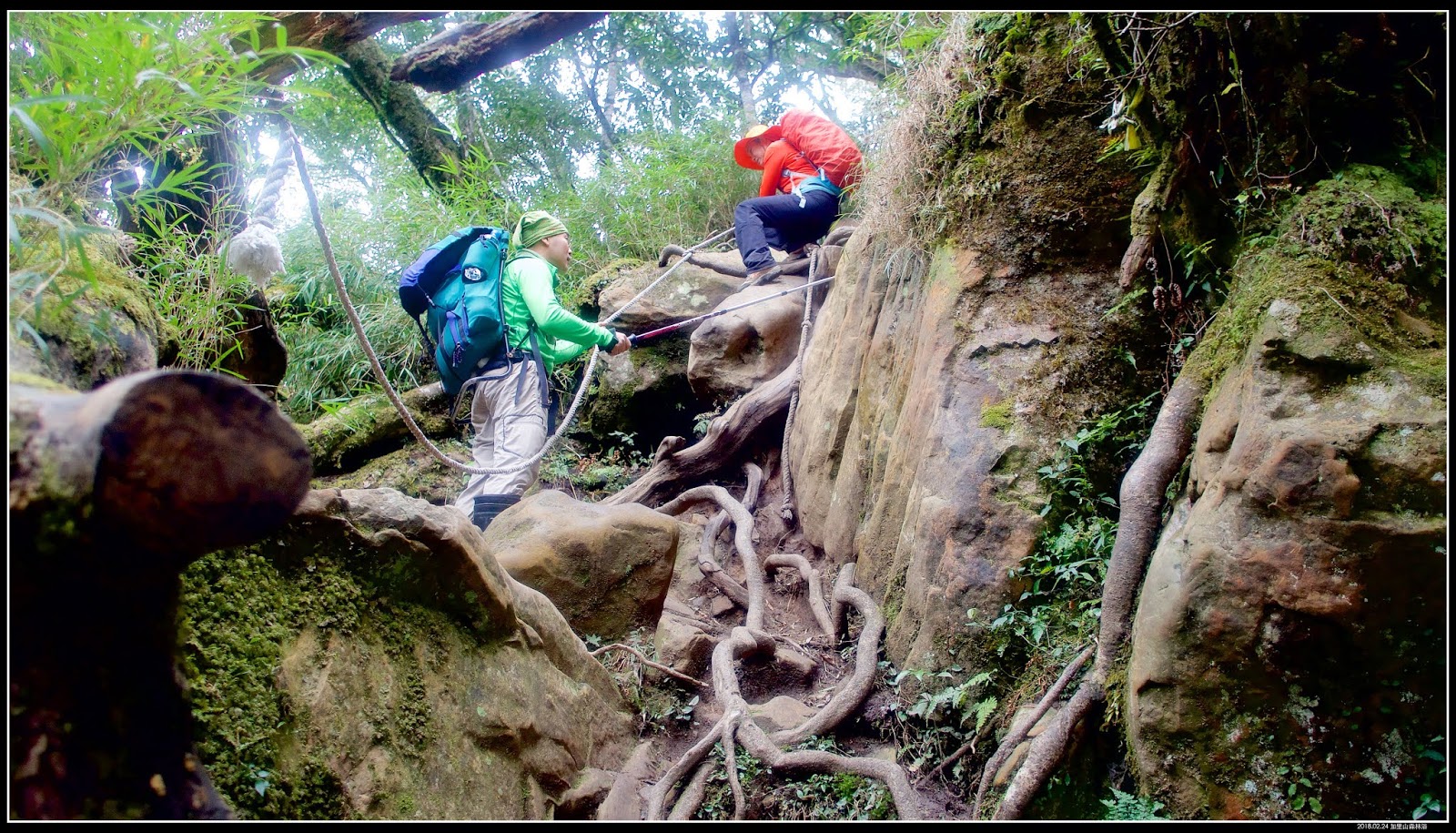 過了救援標號:『9』,開始進入今天旅程的拉繩攀爬路段,很有瘦稜路徑風格,這兩段算是今天的精華區。