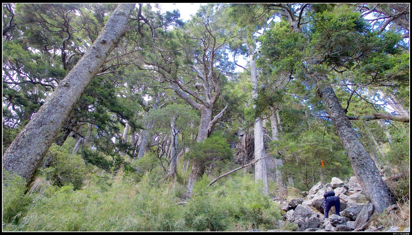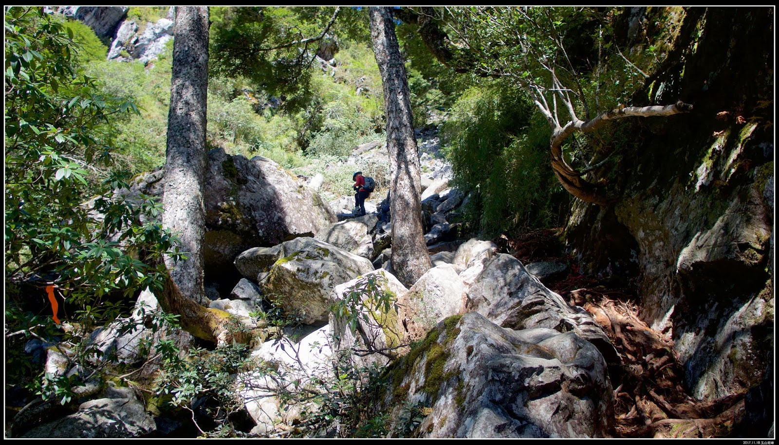 過了救援標號:『8』,岩塊越來越多,路徑幾乎是在大岩塊之間穿梭,和前段的柳杉林間有著完全不一樣的風味。