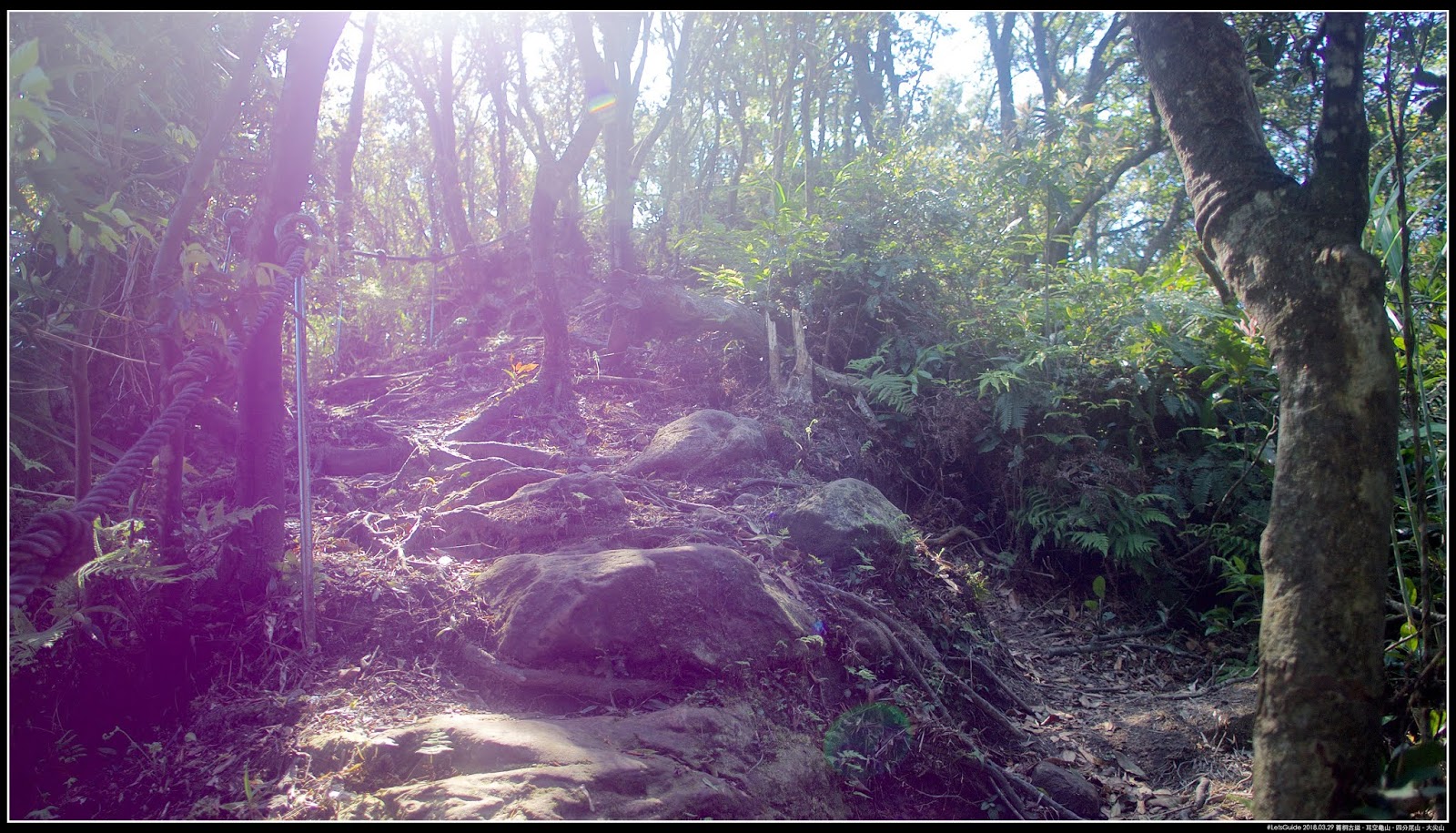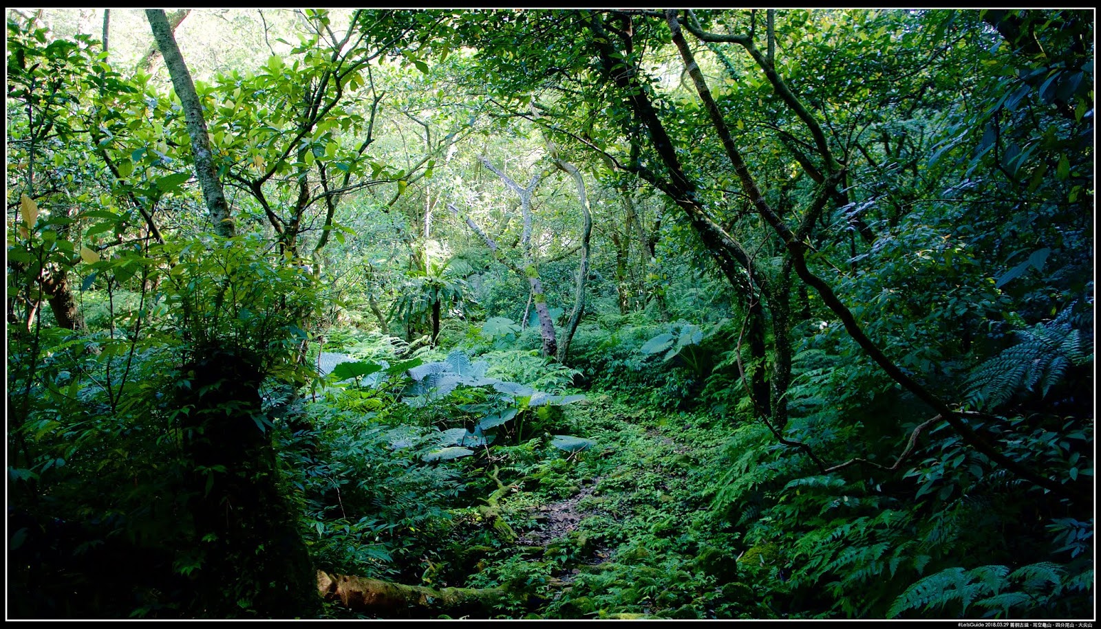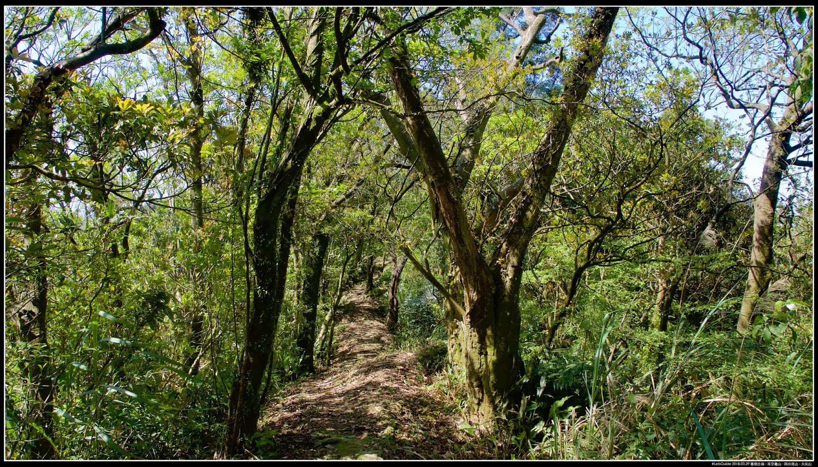 〖耳空龜山步道〗典型稜線路徑,可能是高度不夠,樹木不足以遮陰,路線也是上上下下好幾個小山頭(高度都在550m~600m之間上下),可能是旁邊有比較高的山擋著風,〖耳空龜山步道〗稜線上都還有不少比較高的樹種,不像其他稜線步道,只能出現抗風性強的矮灌木(像是杜鵑)。